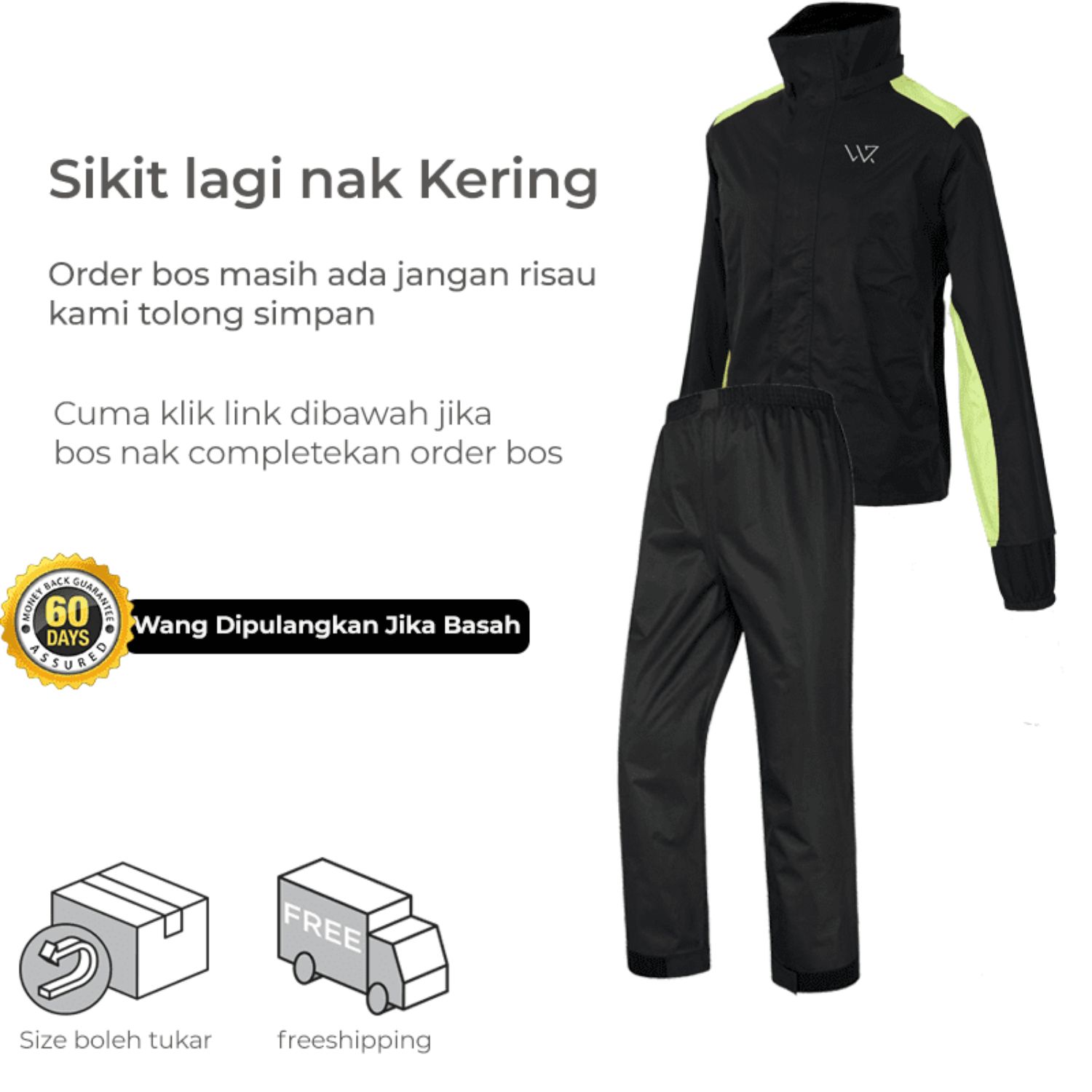 Jikalau Baju Hujan Riboot Heavyduty ini menghampakan anda, kami akan pulangkan wang anda tanpa soal.